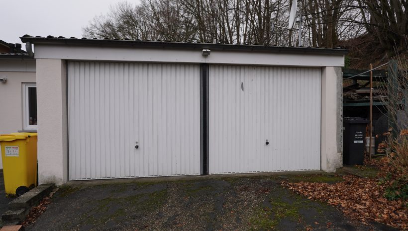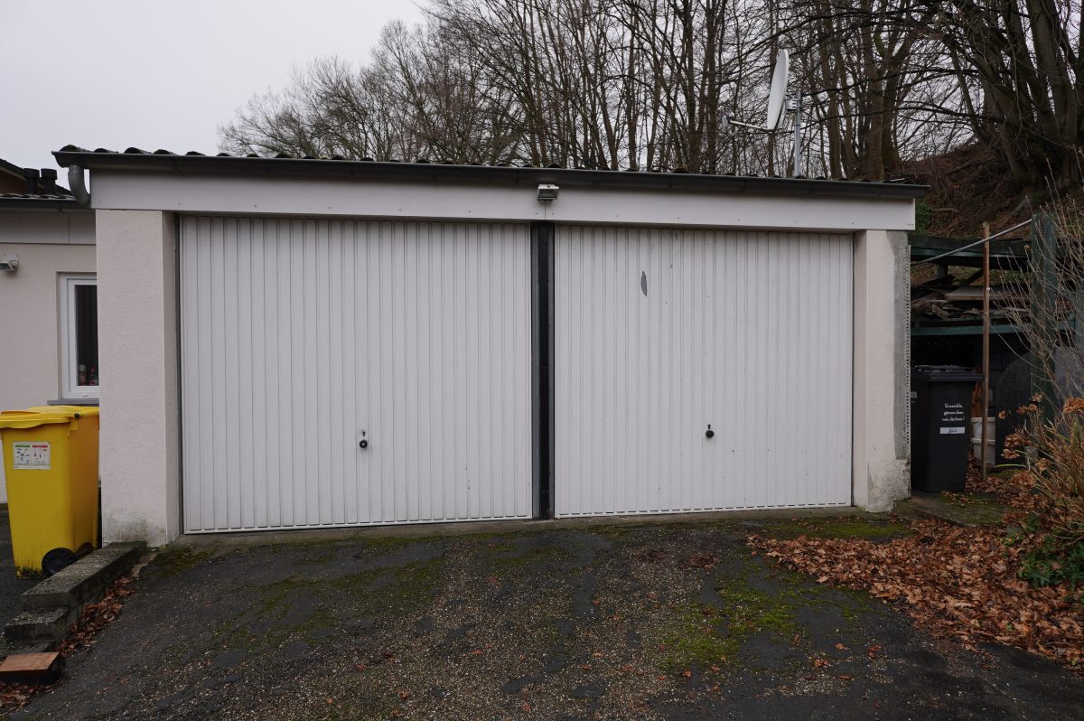 Die Doppelgarage ist mit einer Wartungsgrube ausgestattet und bietet Platz für zwei Fahrzeuge. Auch die Zufahrt ermöglicht das Abstellen mehrerer Fahrzeuge.