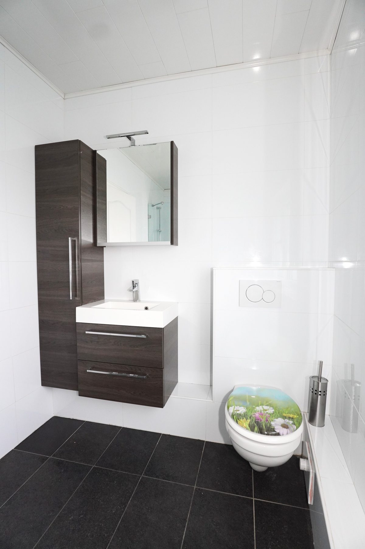 Obergeschoss: Nachtdiele, Badezimmer mit Dusche, Waschbeckenmöbel und WC, drei Schlafzimmer.