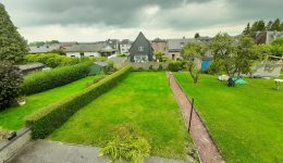 Sehr schönes und gut unterhaltenes Reiheneckhaushaus im Hochparterrestil. Auf dem Erdgeschoss befindet sich der großzügige Eingangsbereich mit Gäste-WC sowie ein dahinter liegendes Gästezimmer, das auch als Büro oder Schlafzimmer genutzt werden kann. Neben dem Eingangsbereich geht es zur grossen Garage, sie ist über 6 m lang und bietet somit auch genügend Platz für größere Wagen. Eine Waschküche, die sich hinter der Garage befindet hat einen direkten Zugang zur Terrasse und zum Garten. Auf der Etage führt der Nachtflur zum Wohn- und Esszimmer, von dem man in die Küche gelangt. Hinter dem Wohnzimmer befindet sich ein Schlafzimmer, das ebenfalls als Büro genutzt werden könnte. Der Nachtflur bietet des weiteren Zugang zu einem zusätzlichen großem Schlafzimmer sowie einem Bad mit WC, Wanne und Waschtisch. Der Speicher ist begehbar und würde noch die Möglichkeit bieten, ein weiteres Zimmer einzurichten. Gaszentralheizung mit Niedrigenergiekessel. Schöner Fernblick. Es wurden neue Fenster und eine neue Heizung eingebaut, neuer Anstrich. Das ganze Haus ist energetisch voll saniert worden, die Aussenwände wurden isoliert, die Garagendecke separat isoliert und wie gesagt neue Fenster und Gasheizung. Dies erklärt auch den guten Energiewert der Klasse B. Garage mit elektischem Sektionaltor, Rollläden, überall Betondecken, Parkettboden in Living und Nachtflur. Die Immobilie liegt in einer ruhigen Parzellierung ohne Durchgangsverkehr und doch ganz in der Nähe des Zentrums.