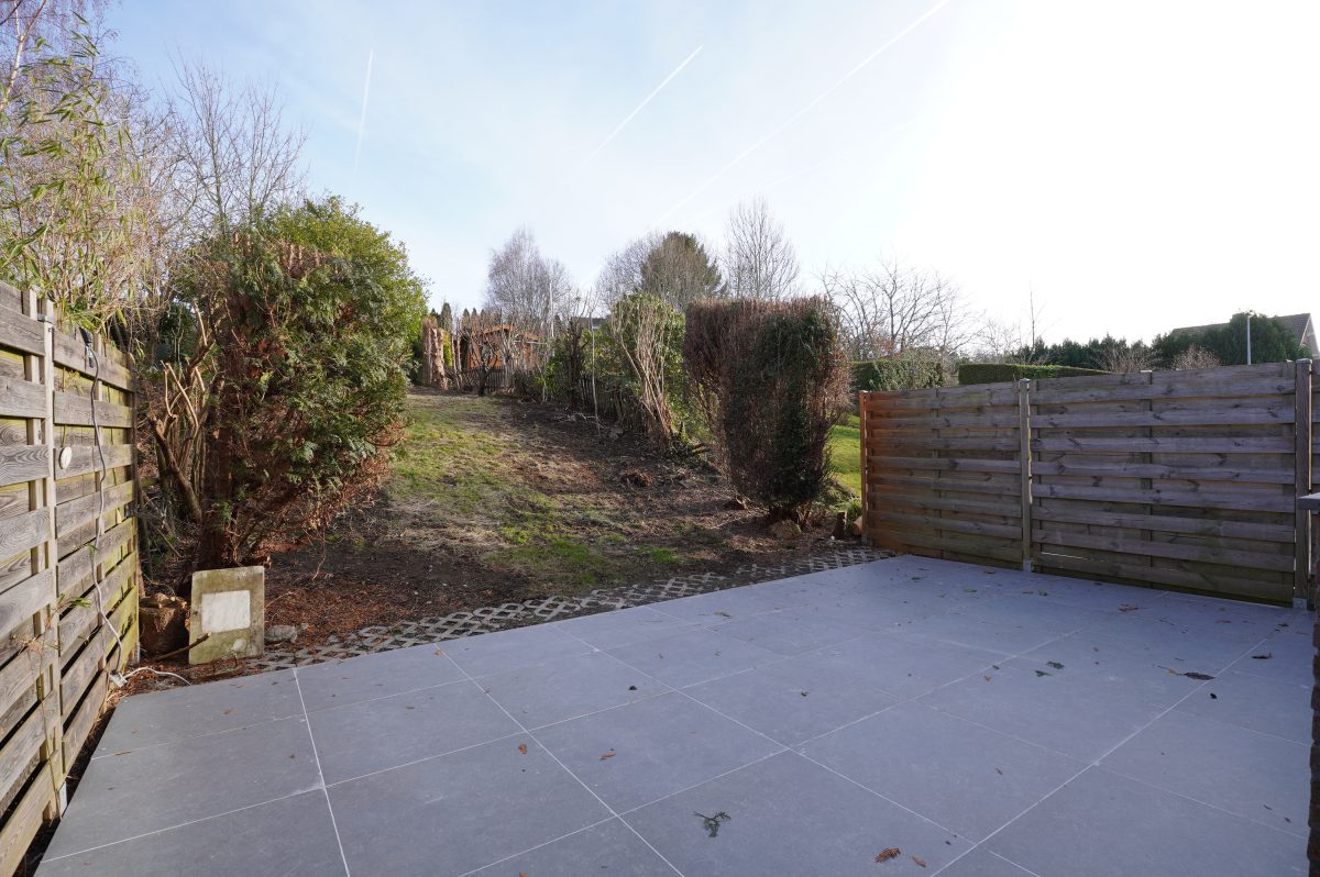 Vom Wohnzimmer aus gelangt man auf die schöne neue Terrasse und in den großen Garten. Dieser verfügt über einen erhöhten Bereich mit einer zweiten, ideal sonnig gelegenen Terrasse sowie einem praktischen Gartenhaus.