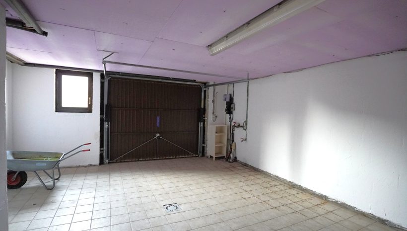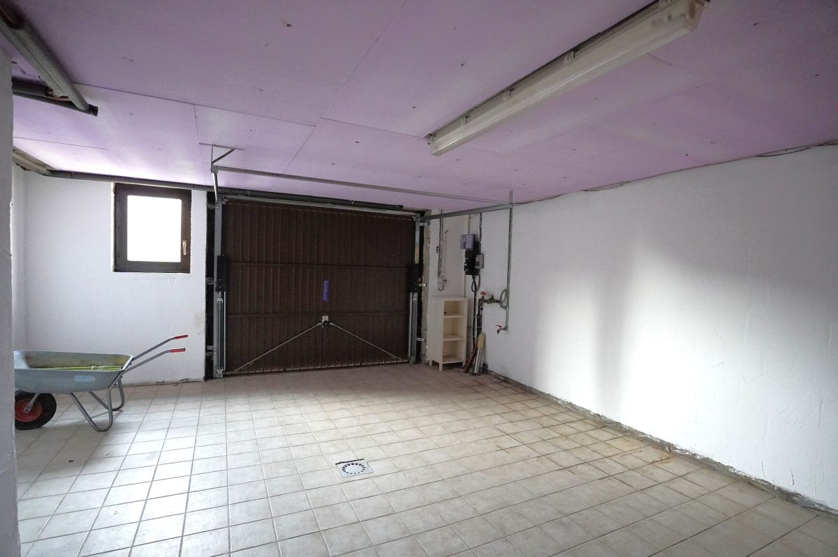 Der Keller besteht aus einer Waschküche mit Anschlüssen für eine Waschmaschine, der zentralen Ölheizung sowie die Möglichkeit über eine Treppe zur Terrasse und zum gesamten Außenbereich zu gelangen. Zudem gibt es einen zweiten Kellerraum mit dem Öltank sowie die große Garage.