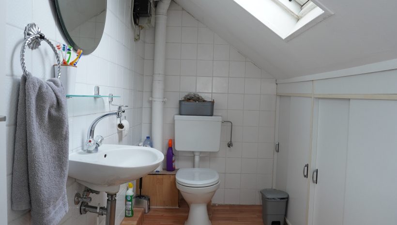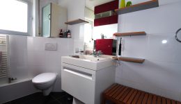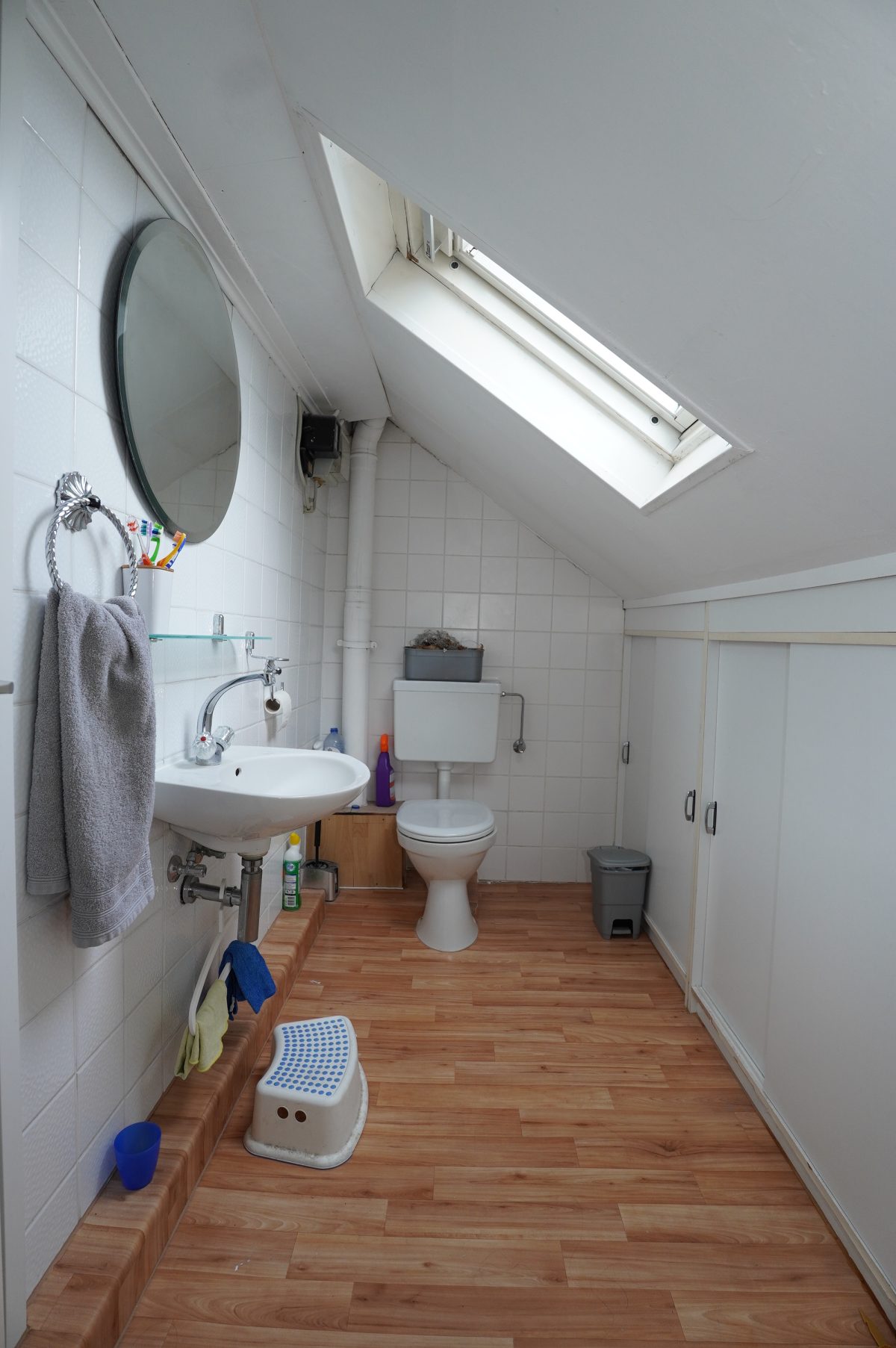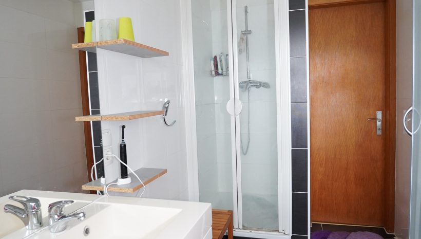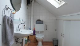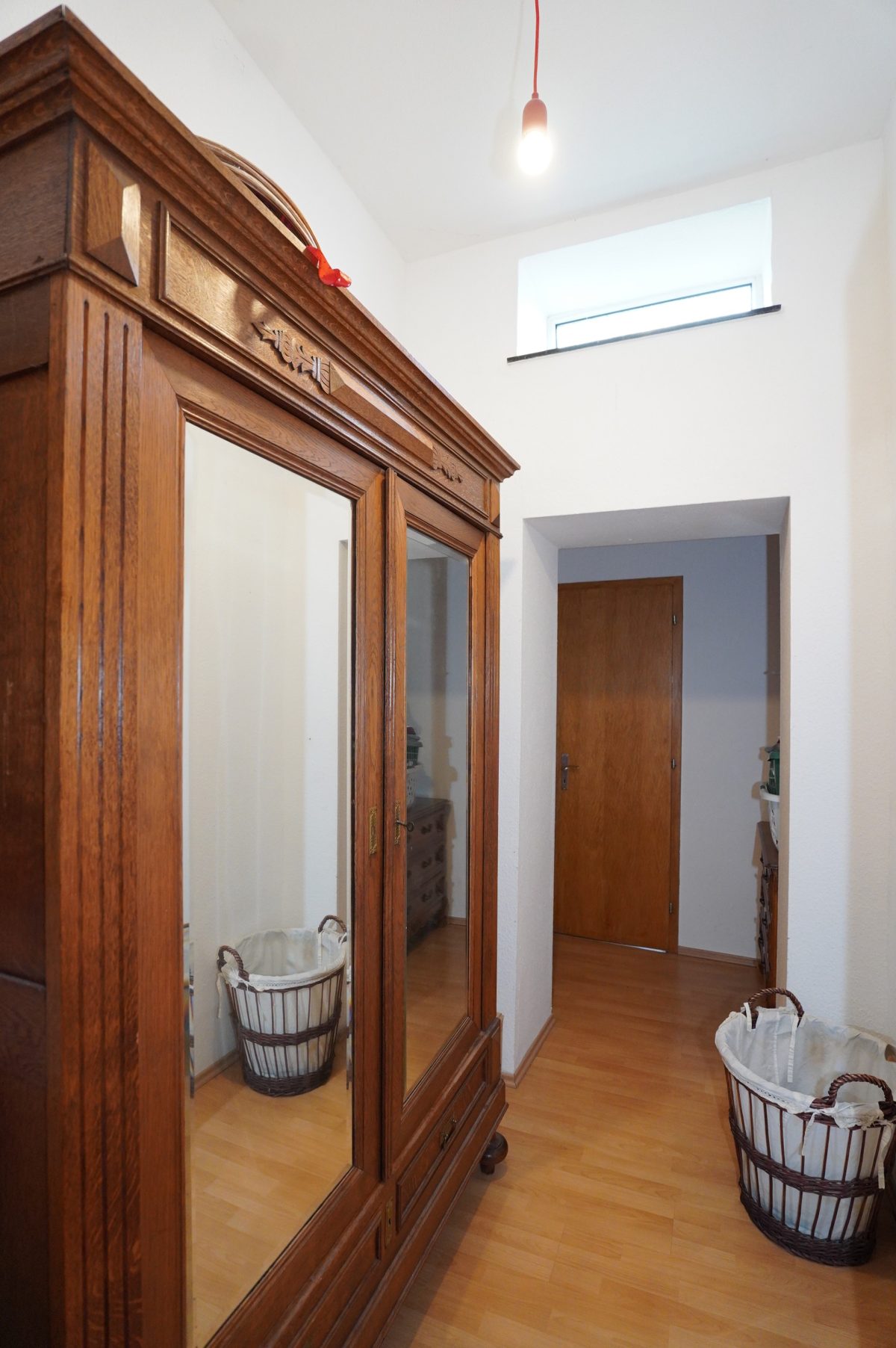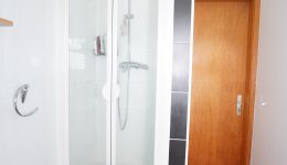Zwischengeschoss der Komplet abgetrennt werden kann: Ein Flur/Ankleidebereich, ein Badezimmer mit Waschbeckenmöbel, Dusche und WC; und ein geräumiges Schlafzimmer.