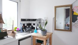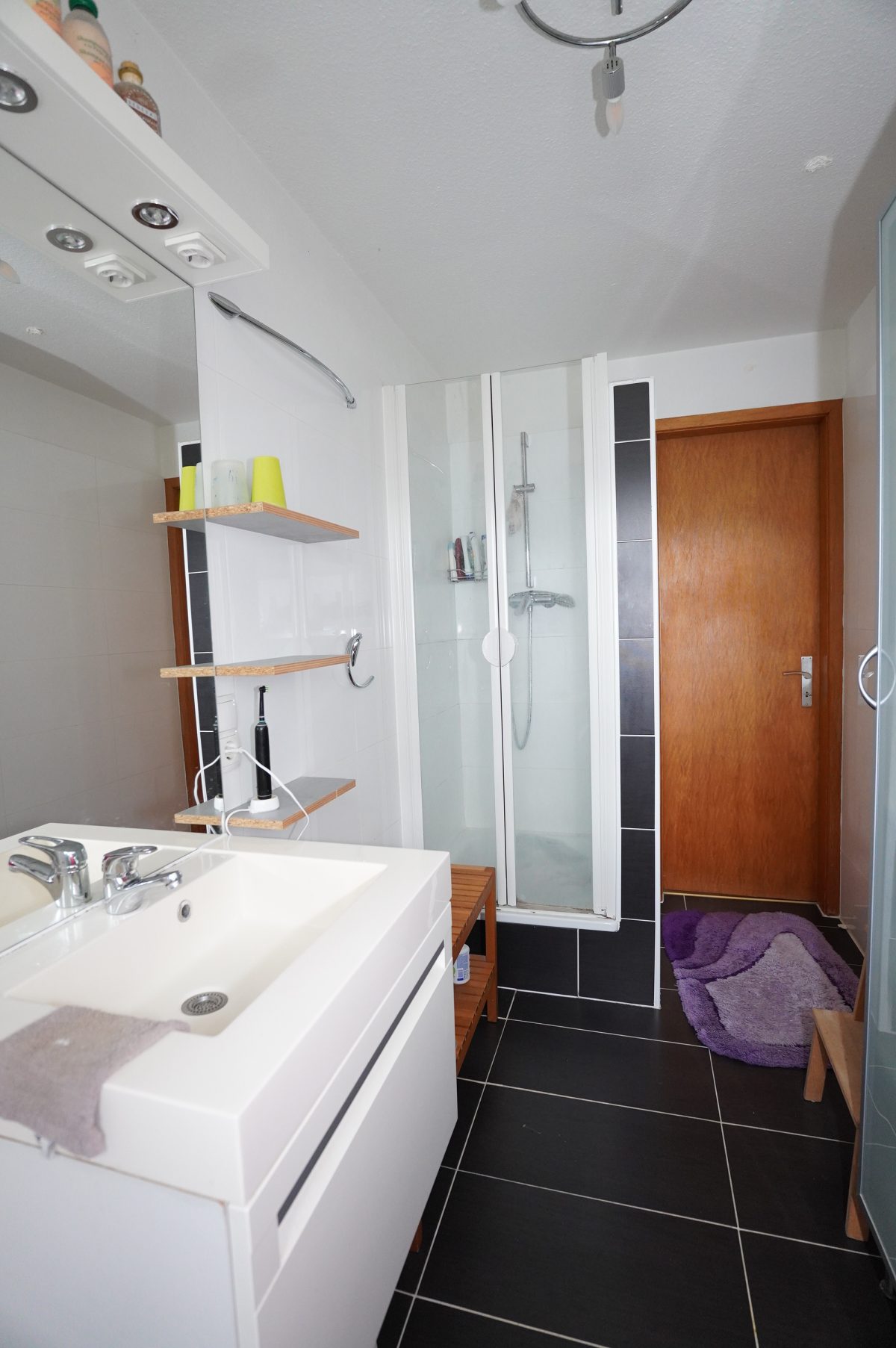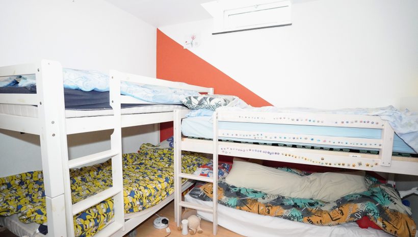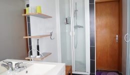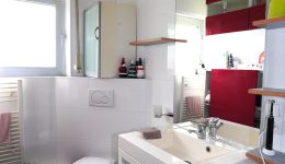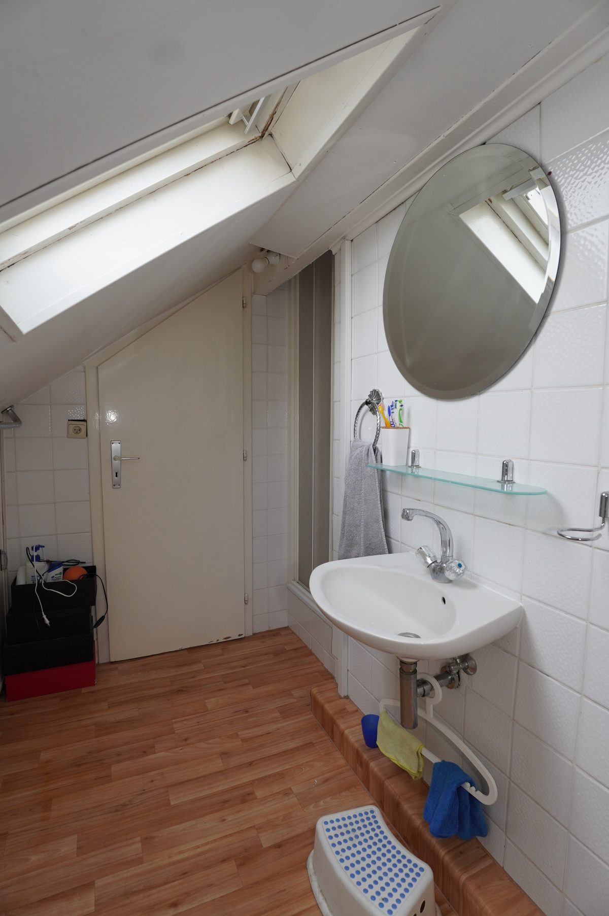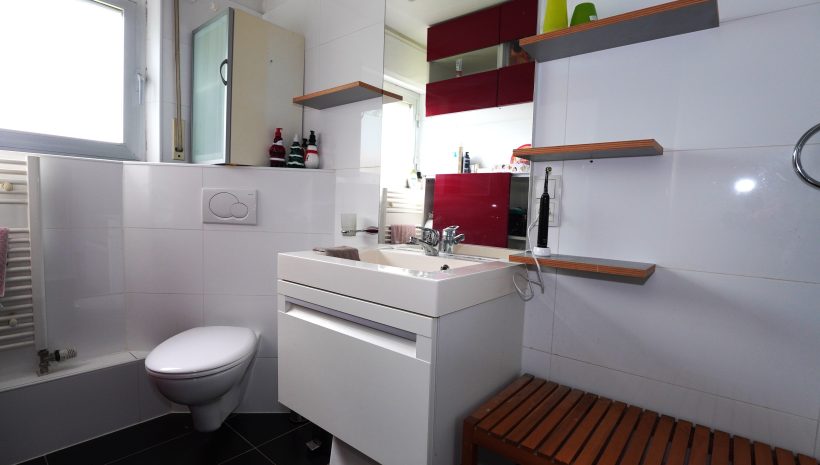 Zwischengeschoss der Komplet abgetrennt werden kann: Ein Flur/Ankleidebereich, ein Badezimmer mit Waschbeckenmöbel, Dusche und WC; und ein geräumiges Schlafzimmer.