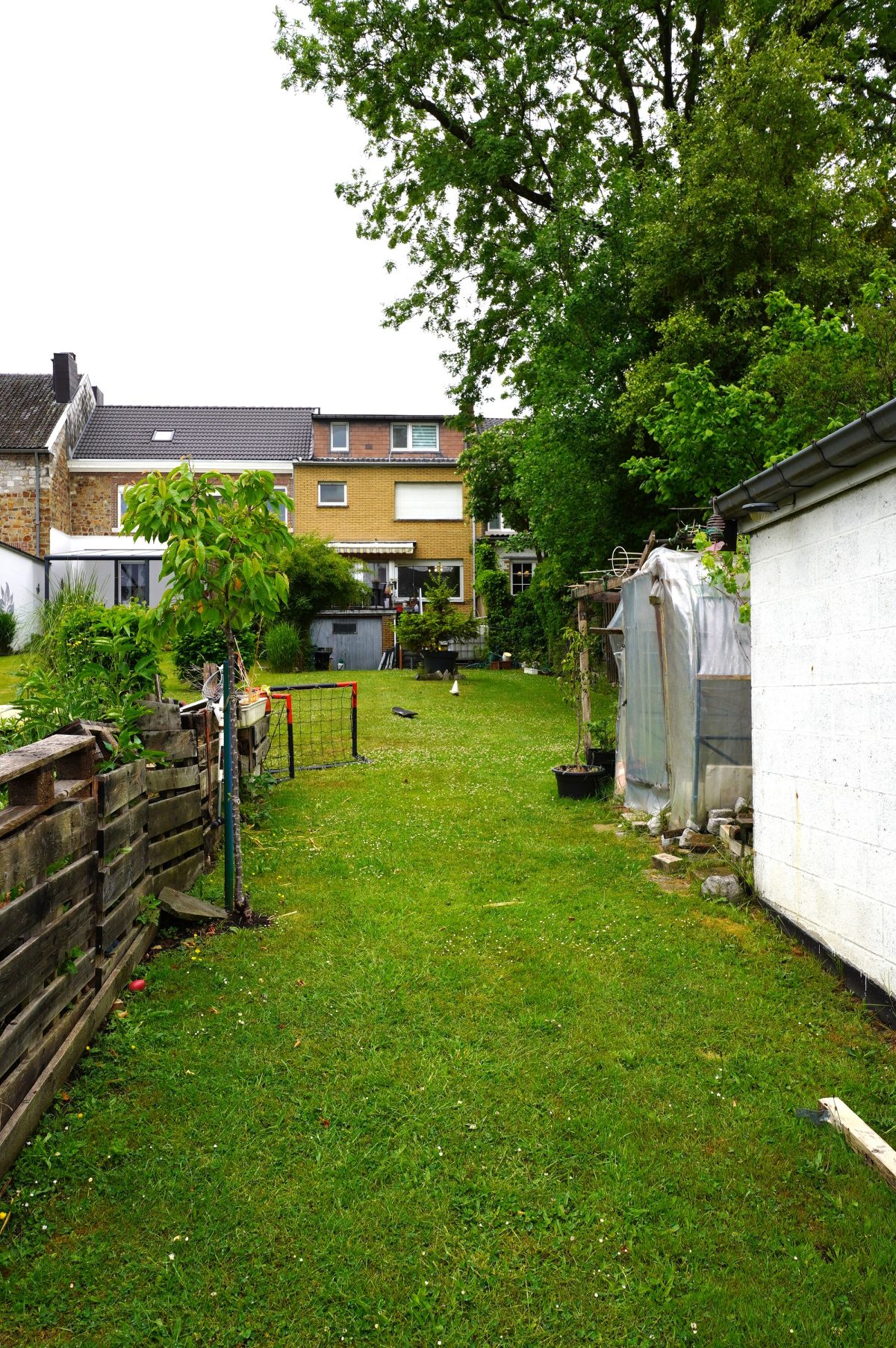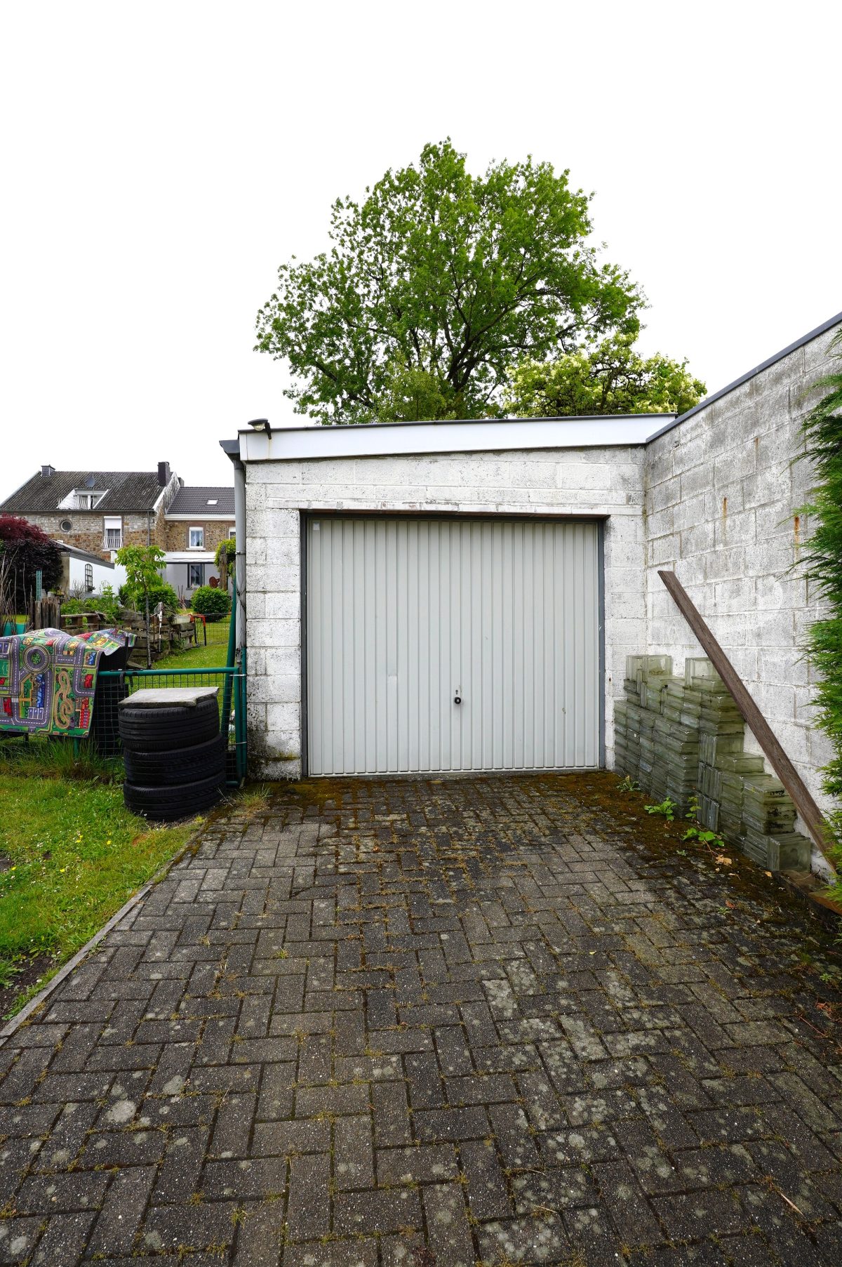 Das Haus hat den Vorteil, auch von hinten zugänglich zu sein, wo sich die Garage für ein Auto befindet.