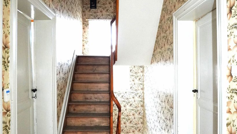 2. Etage: Flur, ein geräumiges Wohnzimmer, ein weiteres Schlafzimmer und ein ausbaubarer Dachboden.