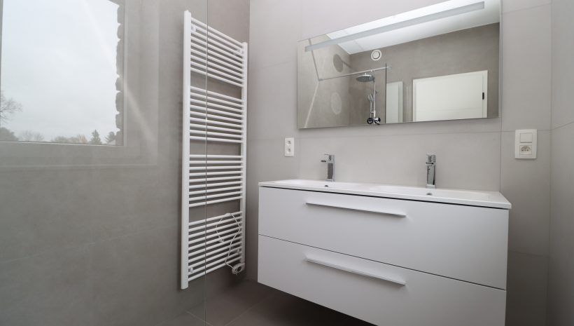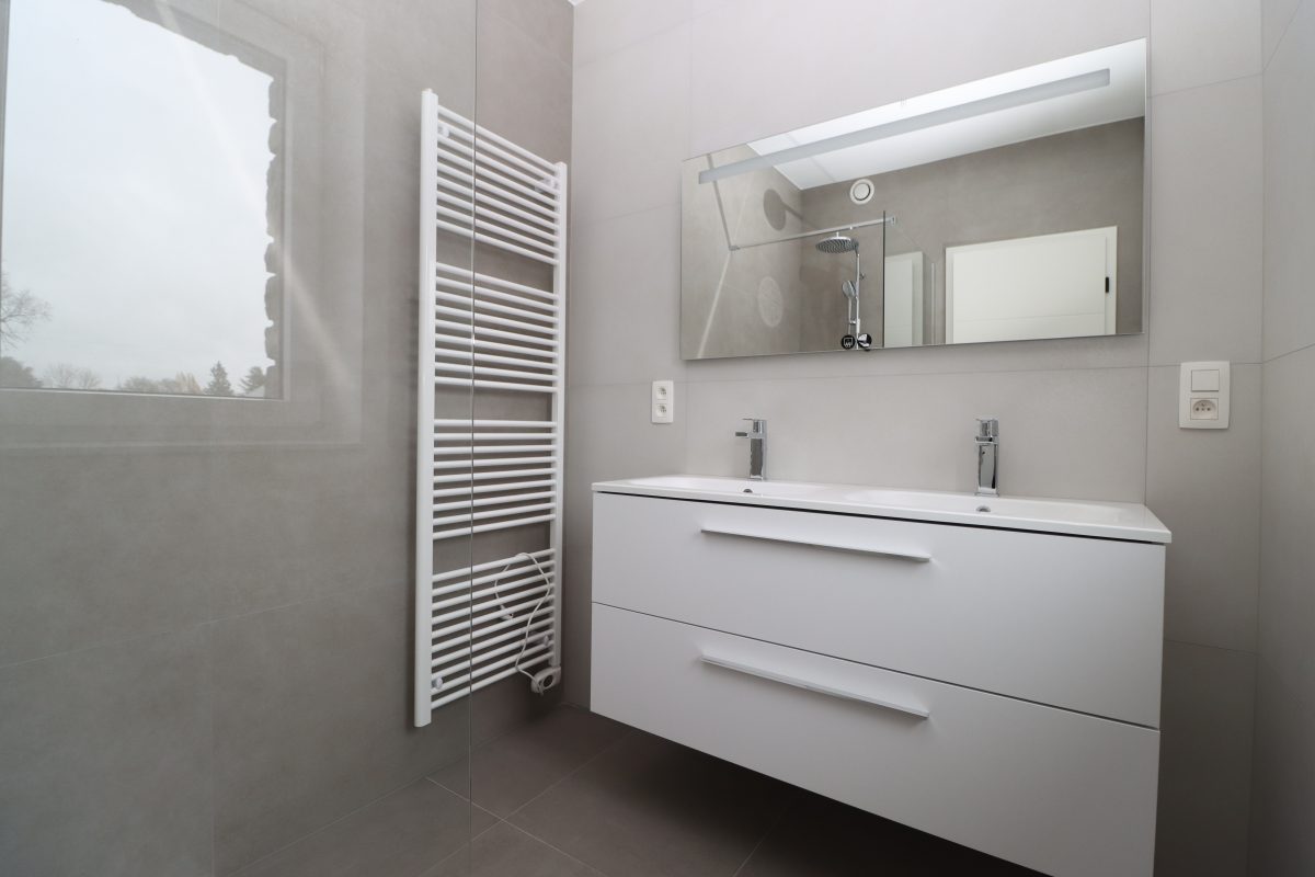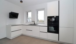 Schöne Fliesen sind überall vorhanden sowie weiße Innentüren mit schwarzen Türklinken. Die bereits teils vorhanden Leuchtmittel sind ebenfalls in schwarz. Die vorhandene Fußbodenheizung lässt alle Räume behaglich wirken.