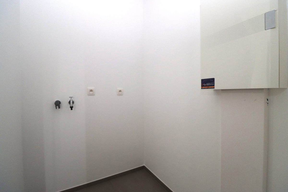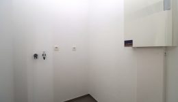 Die Aufteilung der Wohnung sieht wie folgt aus: In der Diele ist ausreichend Platz für eine Garderobe. Ebenfalls befindet sich hier ein Gäste-WC sowie gegenüberliegend ein Abstellraum mit Anschluss für Waschmaschine und Trockner. Direkt im Anschluss befindet sich das Schlafzimmer mit zwei bodentiefen Fenstern, die den Raum hell und gemütlich wirken lassen. Das Bad en Suite verfügt über ein Doppelwaschbecken, Badmöbel, beleuchtetem Spiegel, bodenbündiger Duschtasse sowie einem Handtuchhalter. Des Weiteren bietet diese Wohnung ein offenes, großzügiges Wohn-Esszimmer mit modern ausgestatteter Einbauküche. Alle Geräte und Armaturen sind in schwarz gehalten. Die viele Fensterfronten lassen auch diesen Raum hell und einladend wirken.