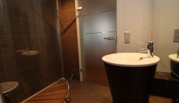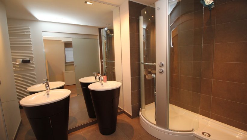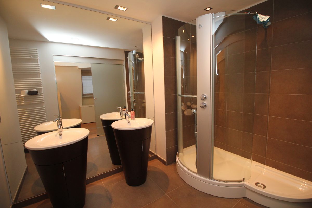 -Bad 1 mit italienischer, begehbarer Dusche, WC, Doppelwaschbecken und Badmöbel