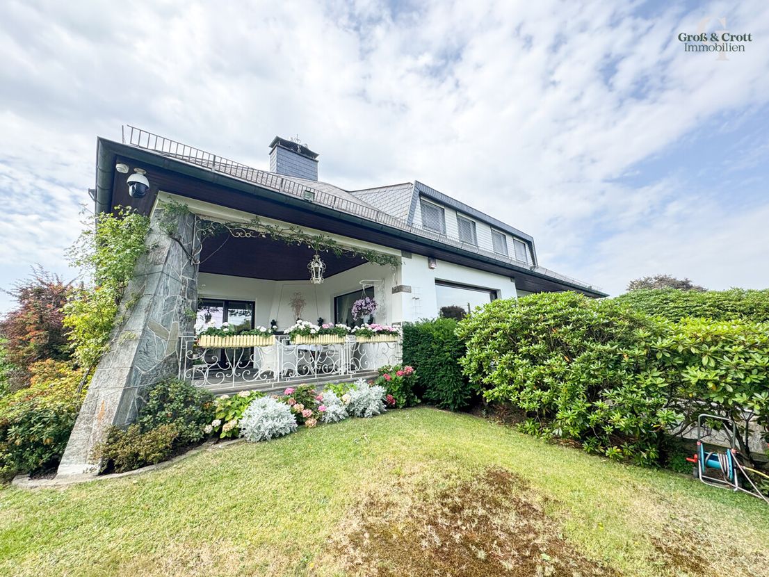 An der Vorderseite des Hauses befindet sich eine überdachte Terrasse, die zu gemütlichen Stunden bei jedem Wetter einlädt, während auf der Rückseite eine große Sonnenterrasse mit ca. 75 m² ideal für Sonnenanbeter und gesellige Runden ist. Zum Anwesen gehören zudem eine Doppelgarage für max. 3 Fahrzeuge sowie eine Einliegerwohnung mit einer Wohnfläche von ca. 80 m², die an ein freundliches Ehepaar vermietet ist und eine angenehme, zuverlässige Einnahmequelle darstellt.