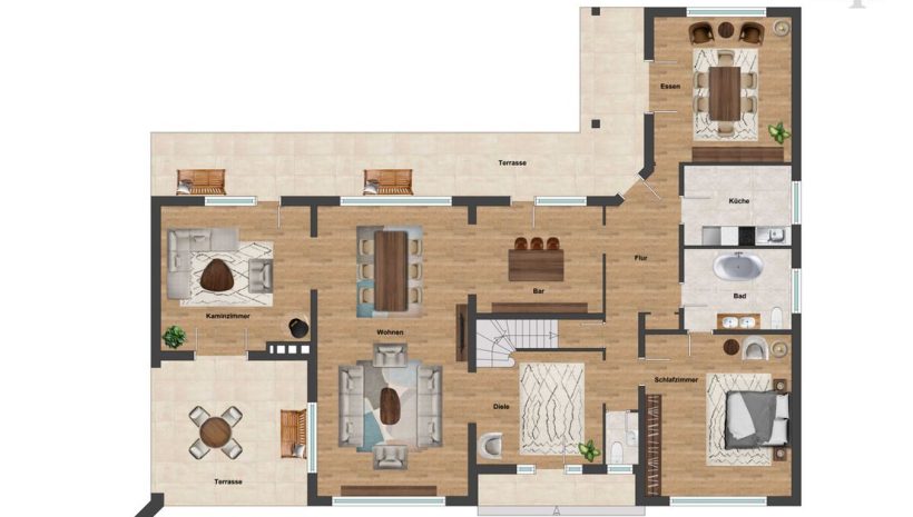 Zusätzlich verfügt das Haus über ein gemütliches Kaminzimmer mit geschlossenem Kamin, das für wohlige Wärme und eine besondere Wohnatmosphäre sorgt.