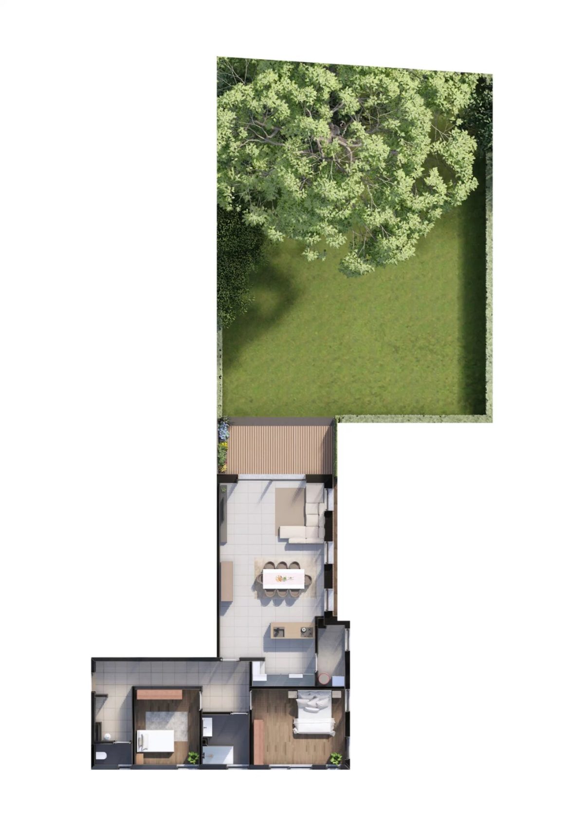Diese Wohnung befindet sich im EG des Gebäudes und verfügt über einen Garten 200,70 m², eine Terrasse 10,70 m², einen PKW Stellplatz innen & außen + Keller.