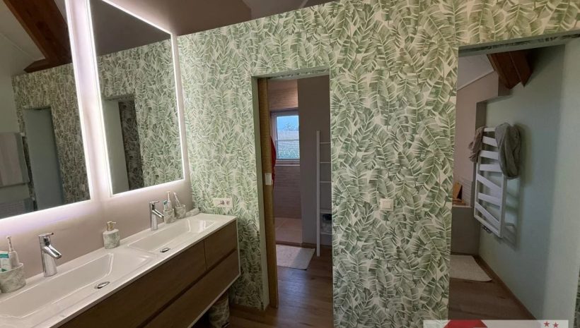 Auch technisch weiß die Villa zu überzeugen: Sie wird über eine Ölheizung mit Tank beheizt, im Erdgeschoss sorgt eine Fußbodenheizung für angenehme Wärme, während im Obergeschoss Heizkörper installiert sind. Die PVC-Fenster verfügen über eine Doppelverglasung. Eine Photovoltaikanlage mit einer Leistung von 8.000 kW produziert umweltfreundlichen Strom, und eine Wasserzisterne versorgt die Toiletten, die Gartenbewässerung sowie die Waschmaschine.
