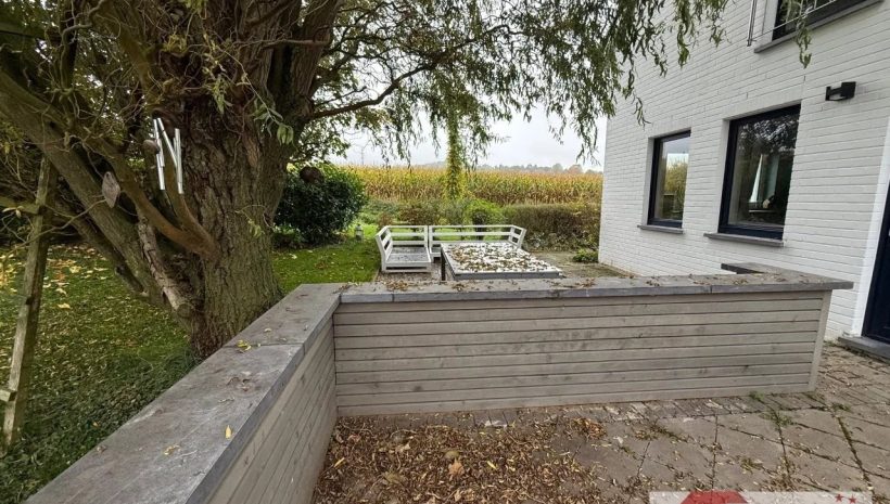 Der Garten ist mit einem Rasenmähroboter ausgestattet, der die Pflege erleichtert.