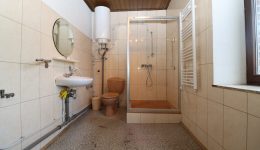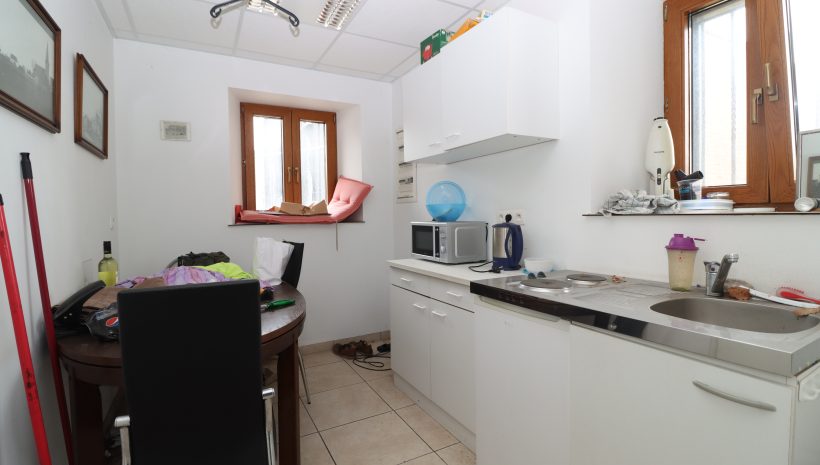• Erdgeschoss: Der Eingang an der linken Seite der Immobilie führt Sie in das Treppenhaus, von dem die verschiedenen Räumlichkeiten zugänglich sind. Auf der rechten Seite des Eingangsbereiches befindet sich eine separate Toilette und der Zugang zu einer großen Fläche, die sich ideal für eine gewerbliche Nutzung eignet. Diese Geschäftsfläche verfügt über ein Schaufenster zur Straßenseite und einen zweiten Eingang. Auf der linken Seite des Treppenhauses befindet sich ein funktionaler Bürobereich, der je nach Aktivität auch anderweitig genutzt werden könnte. Außerdem befindet sich hier eine kleine Küche und ein Abstellraum.