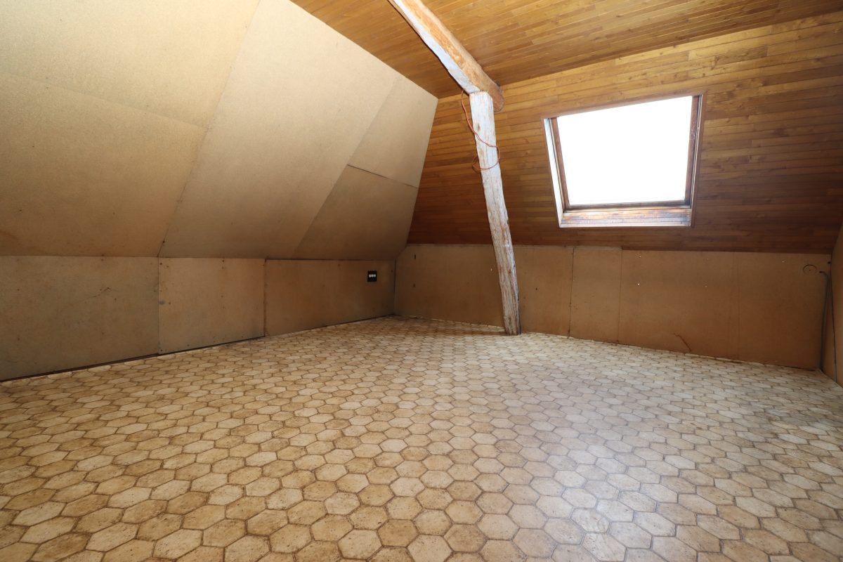 • Zweite Etage: Hier befindet sich ein Speicher, der teilweise ausgebaut wurde. Diesen zusätzlichen Wohnraum könnte man als Schlafzimmer, Hobbyraum oder Ähnliches nutzen, jedoch muss der Bereich vollständig renoviert werden, um sein volles Potenzial zu entfalten. Die restliche Fläche könnte ebenfalls ausgebaut oder als Stauraum genutzt werden.