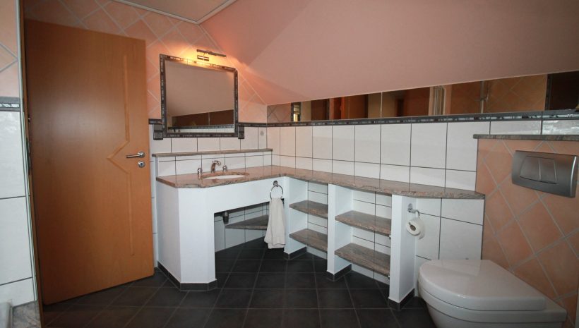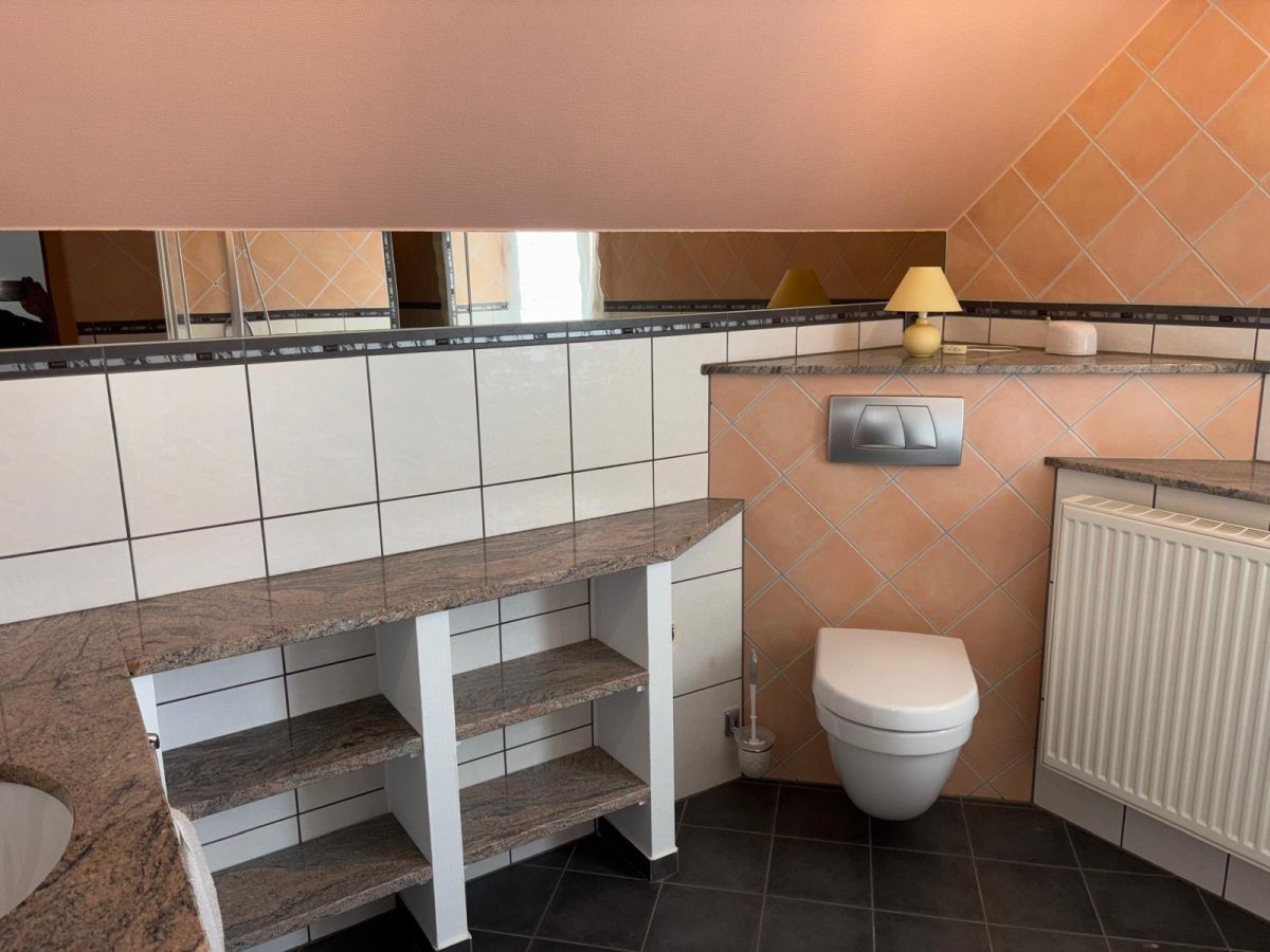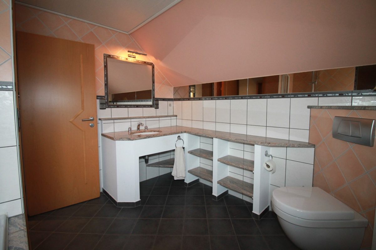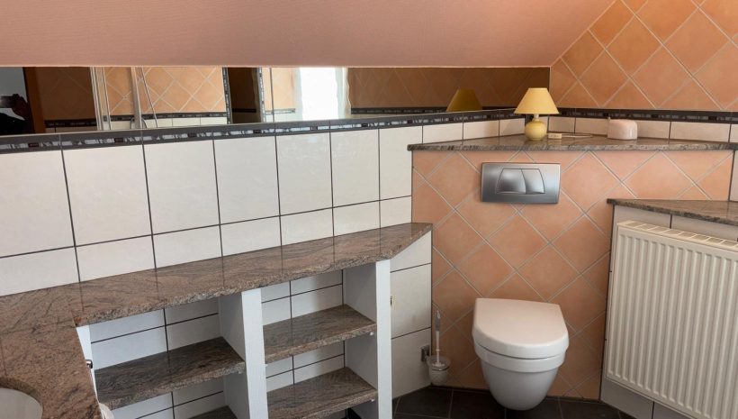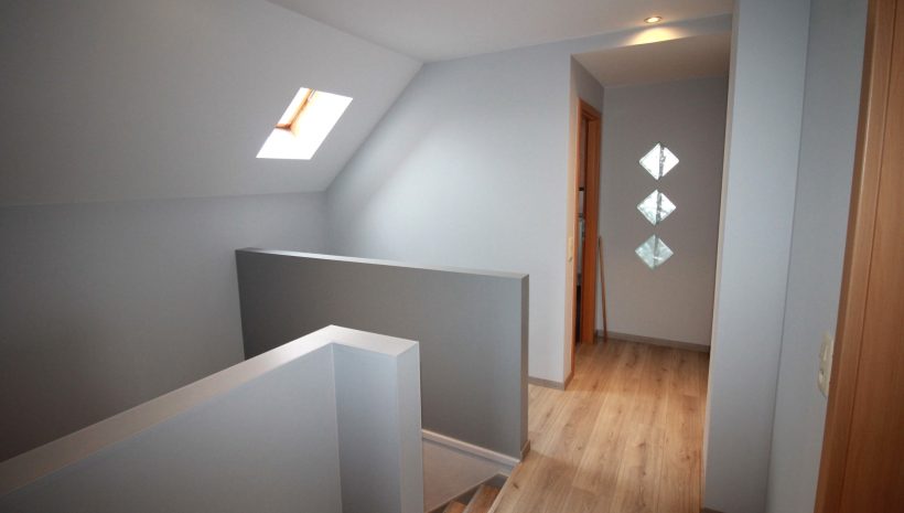 Auf der 1. Etage befinden sich 3 Schlafzimmer, eins davon mit Dressing, sowie ein Badezimmer mit Badewanne, WC und Waschbecken. Ein Speicher steht für zusätzlichen Stauraum zur Verfügung.