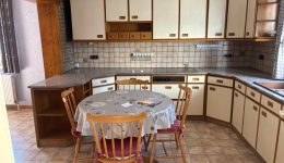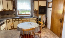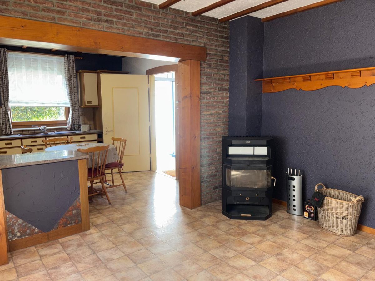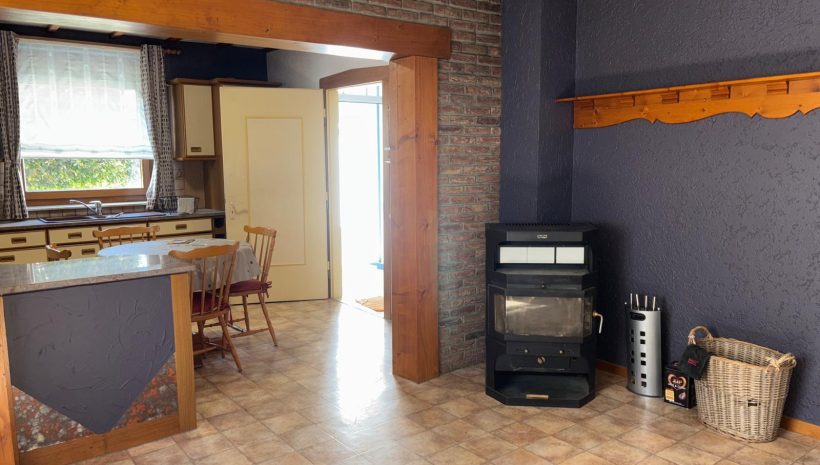 Diese Immobilie mit 2 Fassaden bietet im Erdgeschoss eine Diele, eine Einbauküche mit angrenzendem Wohnzimmer und einem gemütlichen Holzofen, ein Esszimmer sowie einen Abstellraum mit WC.