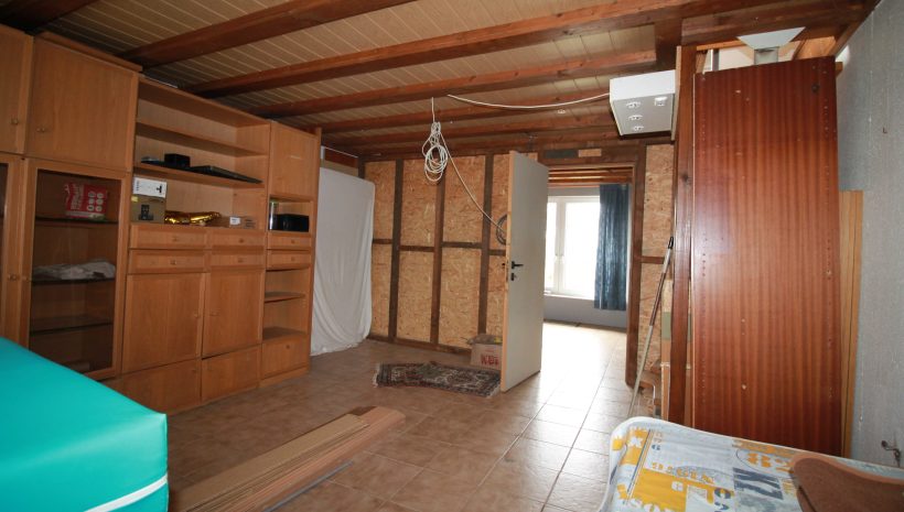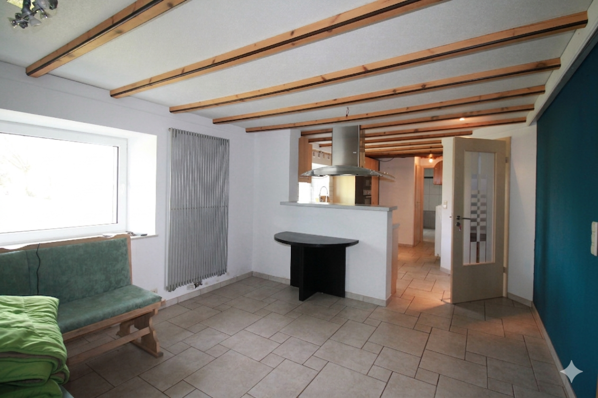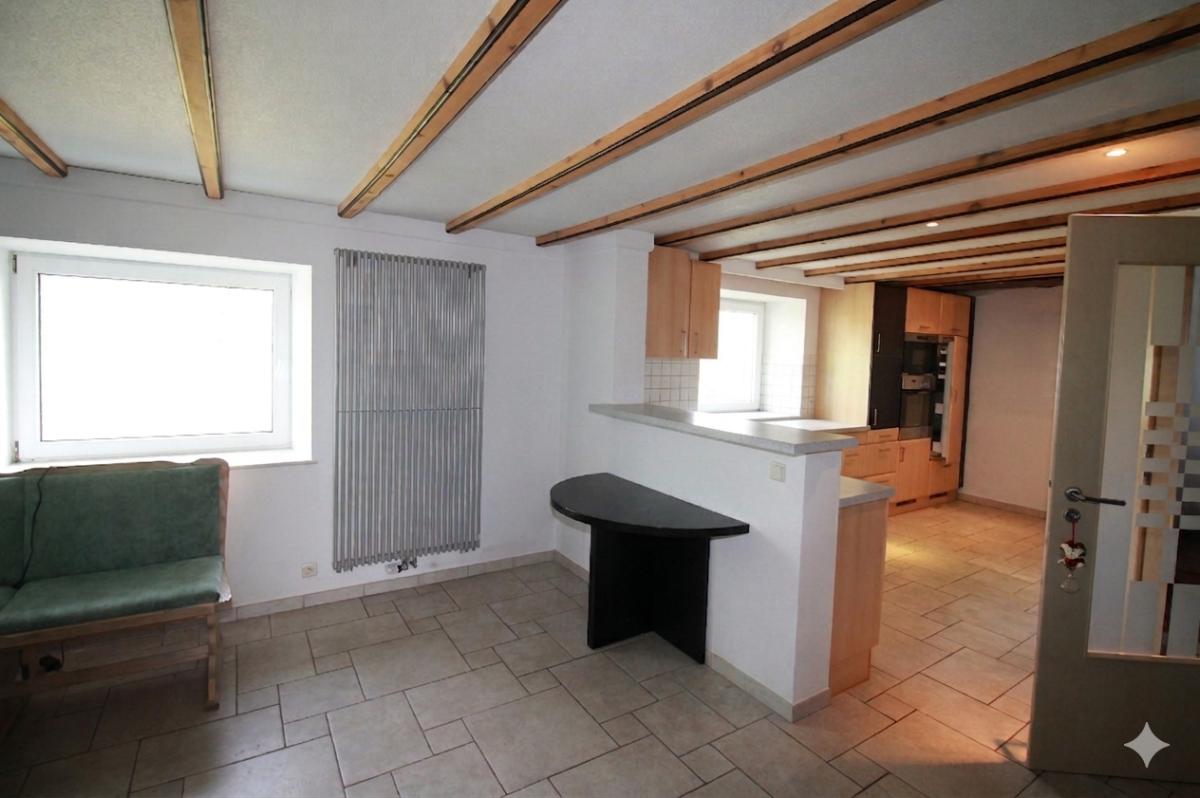 Das Wohnhaus verfügt über eine Wohnfläche von ca. 138,50 m² und bietet eine solide Basis mit zusätzlichem Ausbaupotenzial. Besonders der rechte Teil des Hauses kann noch weiter ausgebaut werden und schafft Raum für eigene Ideen, ist jedoch auch renovierungsbedürftig.
