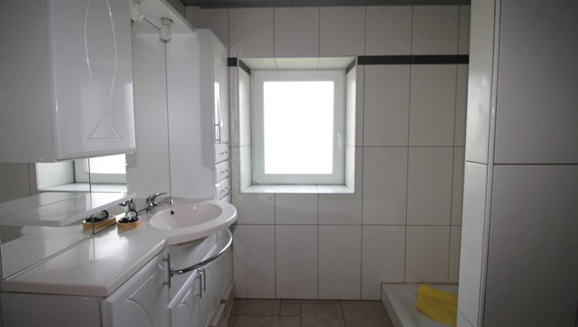 Im Inneren erwarten Sie ein Wohnzimmer, ein Esszimmer sowie eine Einbauküche. Das Badezimmer ist mit Dusche und Waschbecken ausgestattet, wobei der Bereich für eine Badewanne bereits vorgesehen ist, jedoch noch nicht fertiggestellt wurde. Ergänzt wird das Raumangebot durch eine Gästetoilette und insgesamt vier Schlafzimmer. Auf der ersten Etage wurde neuer Laminatboden verlegt. Darüber hinaus stehen ein gewölbter Keller und ein Speicher zur Verfügung, der ebenfalls ausgebaut werden kann.