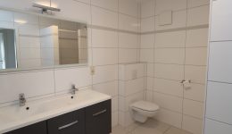 Die Wohnung verfügt über drei Schlafzimmer, von denen sich eines ideal als Büro, Hobbyraum oder Ähnliches nutzen lässt, ganz nach Ihren individuellen Bedürfnissen. Das Badezimmer ist mit einem Doppelwaschbecken, einer Toilette und einer Dusche ausgestattet.
