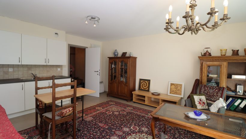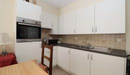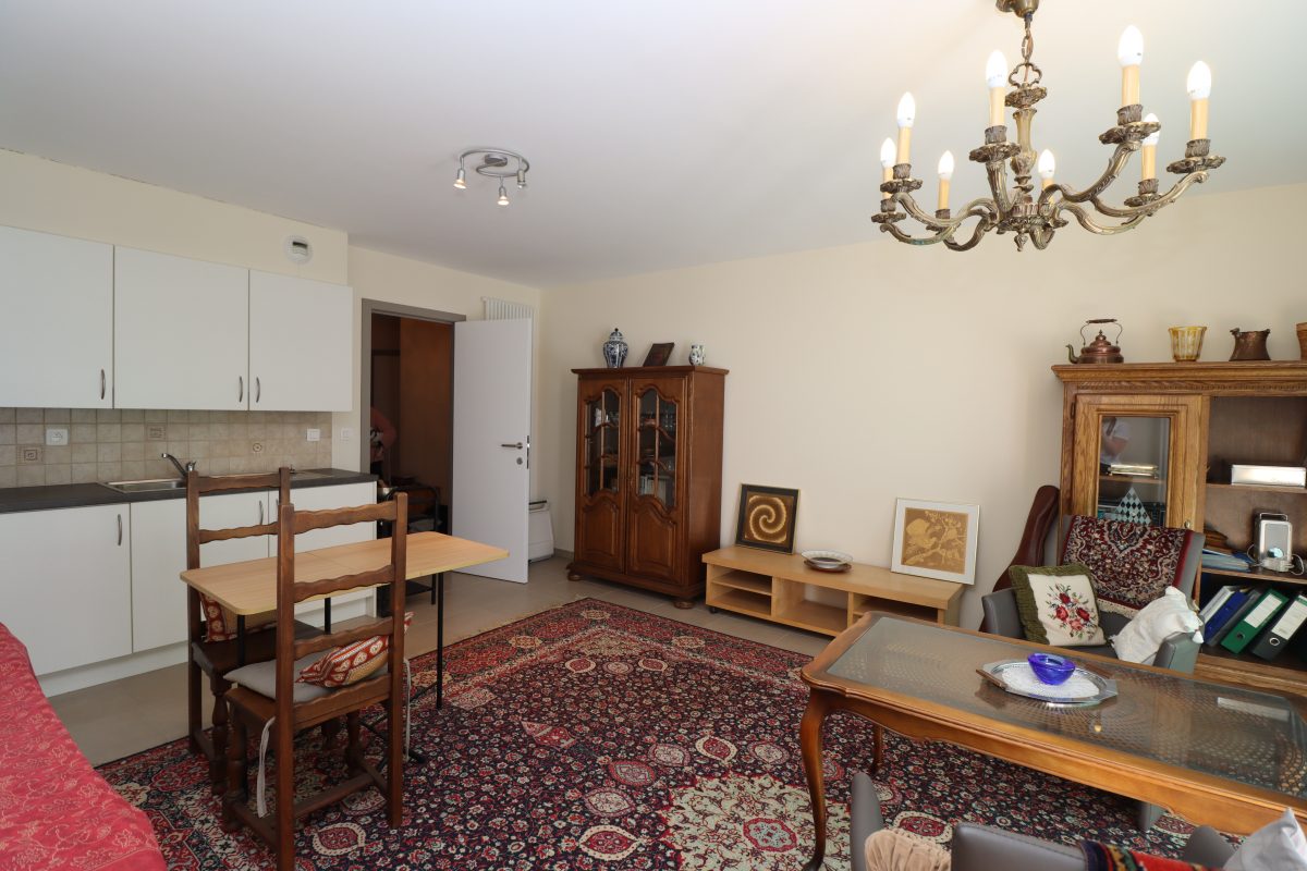 Die ca. 55m² große Wohnung ist wie folgt aufgeteilt: Ein Eingangsbereich, ein Schlafzimmer, ein Abstellraum, ein Badezimmer mit Dusche, Waschbecken und Toilette und ein helles Wohnzimmer mit eingebauter Küchenzeile. Die großen Schiebefenster ermöglichen viel natürlichen Lichteinfall im Wohnraum. Ein Balkon lädt zum Entspannen ein.