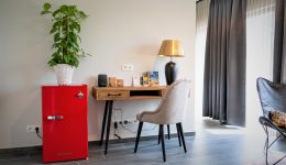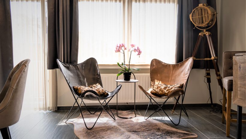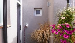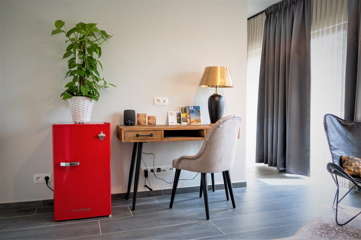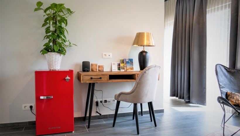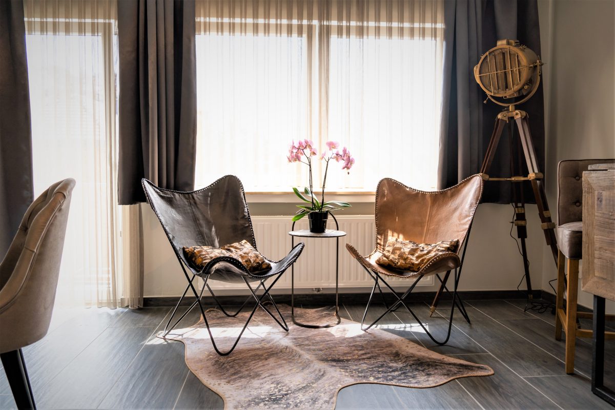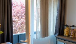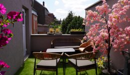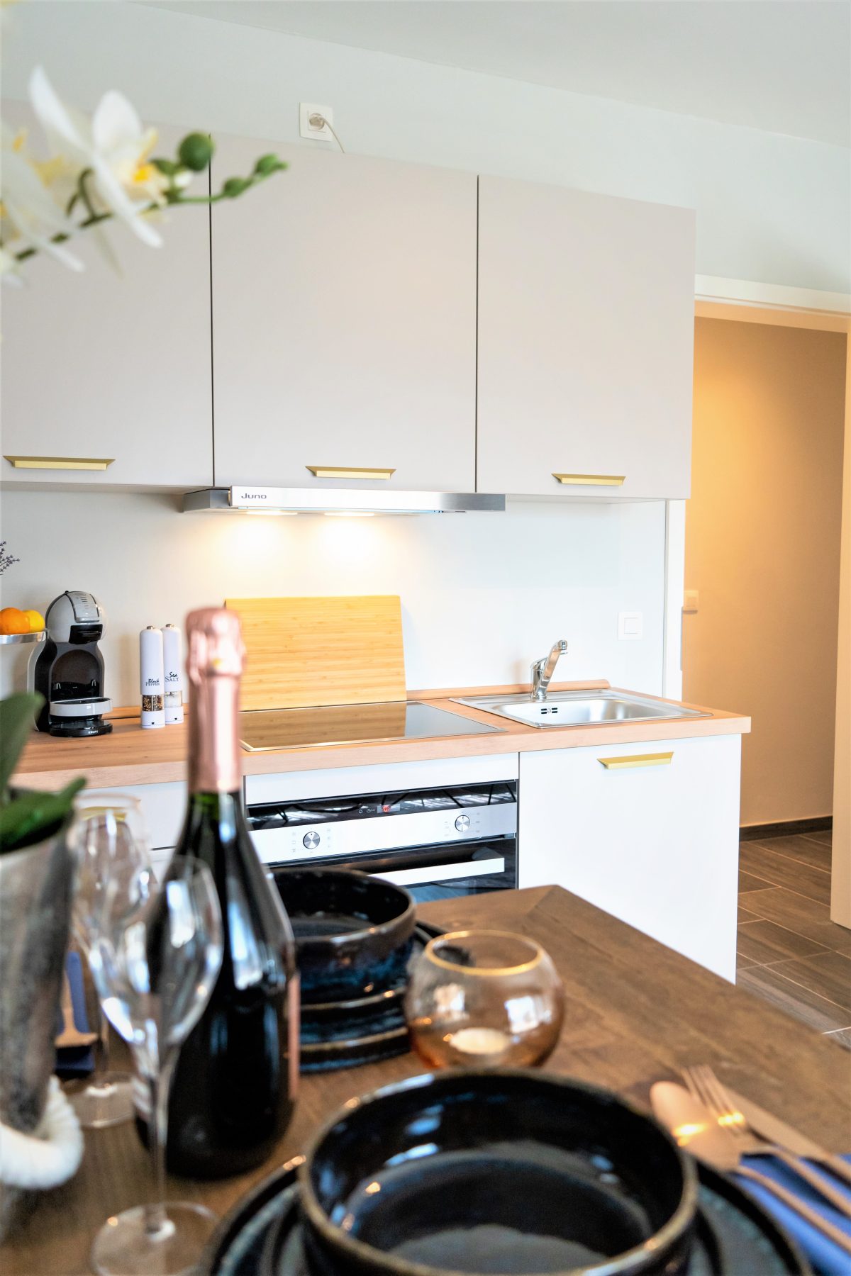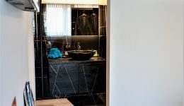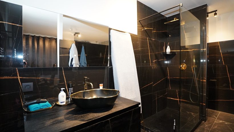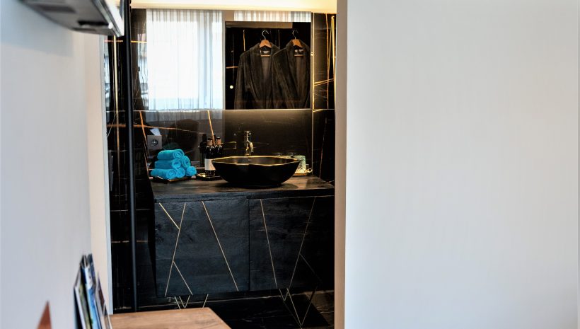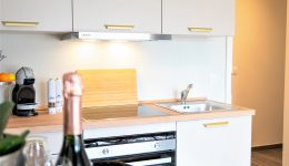 Die erste Etage besteht aus wunderschön renovierten und eingerichteten Apartments/Studios: Zwei modern eingerichtete Studios mit je 35 m², bestehend aus Wohnbereich mit Einbauküche, separatem Schlafzimmer, luxuriösem Bad mit begehbarer Dusche, Waschtisch und WC – jeweils mit eigenem Balkon. Zugang über gemeinsames Treppenhaus mit Flur und Abstellraum.