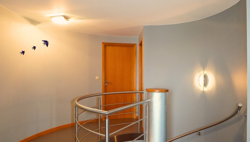 Das Obergeschoss besteht aus einem großzügigen Flur, der zu den verschiedenen Räumen führt: