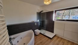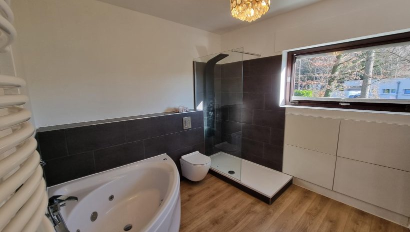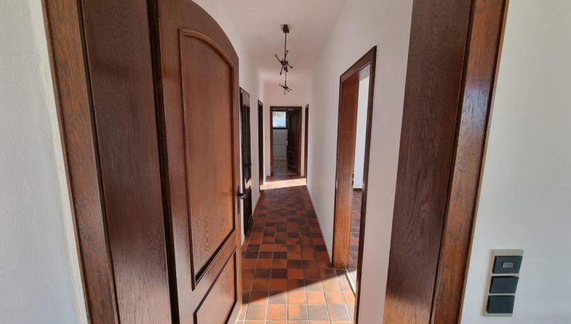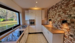 Dieses einmalige Objekt erstreckt sich über drei Ebenen und ist umgeben von einem Garten, der keine indiskreten Blicke erlaubt. Im Erdgeschoss kommen wir in die sehr schöne und lichtdurchflutete Diele, die den Blick freigibt auf eine Fensterfassade. Hinter dieser Fassade gibt es eine grosse überdachte Terrasse mit eingemauertem Grillplatz. Von dieser Terrasse gelangt man ebenfalls zu einer schönen Ruheoase im Untergeschoss, die direkt neben dem innenliegenden Schwimmbad liegt. Rechts neben der Diele befindet sich der sehr geräumige Living mit angrenzender Küche. Auf der linken Seite der Diele geht es zum Schlaftrakt mit zwei Schlafzimmern, Büro und Bad. Direkt am Eingang in der sogenannten Vordiele führt eine Wendeltreppe Sie in das Obergeschoss mit nahezu der gleichen Raumaufteilung, nämlich drei Schlafzimmern, Bad , Living, Küche und Büro. Im Untergeschoss dieser schönen Villa befindet sich ein innenliegendes Schwimmbad dessen Fensterfront geöffnet werden kann und voll nach Süden orientiert ist. Dort haben Sie auch Zugang zu der vorher erwähnten Oase, über die man wiederum über eine Treppe zur überdachten Terrasse kommt, die wir am Anfang des Exposés bereits erwähnt haben. Des Weiteren gibt im Untergeschoss eine sehr grosse Garage, die Platz für 2 bis 3 Autos bietet und natürlich die Technikräume für Heizung und Schwimmbad. Allein der fantastische Blick über das schöne Dorf Hergenrath und weit darüber hinaus rechtfertigt eine Besichtigung.