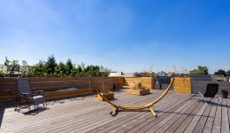 Das Highlight ist die großzügige Dachterrasse mit 80 m², die den ganzen Tag über Sonne bietet und eine unvergleichliche Aussicht auf die Umgebung gewährt. Trotz der Nähe zu Bahnhof, Autobahn und Einkaufsmöglichkeiten, besticht die Lage durch ihre ruhige Umgebung. Dieses Loft ist ein echtes Herzstück und bietet ein unverwechselbares Wohngefühl.