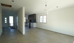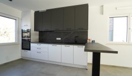 Der einladende, halb offene Eingangsbereich bietet Zugang zu allen Wohnräumen. Das helle und geräumige Wohnzimmer geht offen in die wunderschöne, neue und vollständig ausgestattete Küche über. Zudem verfügt das Haus über zwei schöne Schlafzimmer sowie ein Badezimmer mit ebenerdiger Dusche, WC und Waschbeckenmöbel.