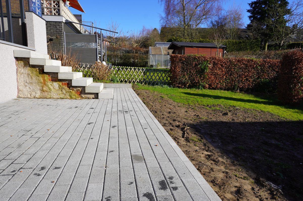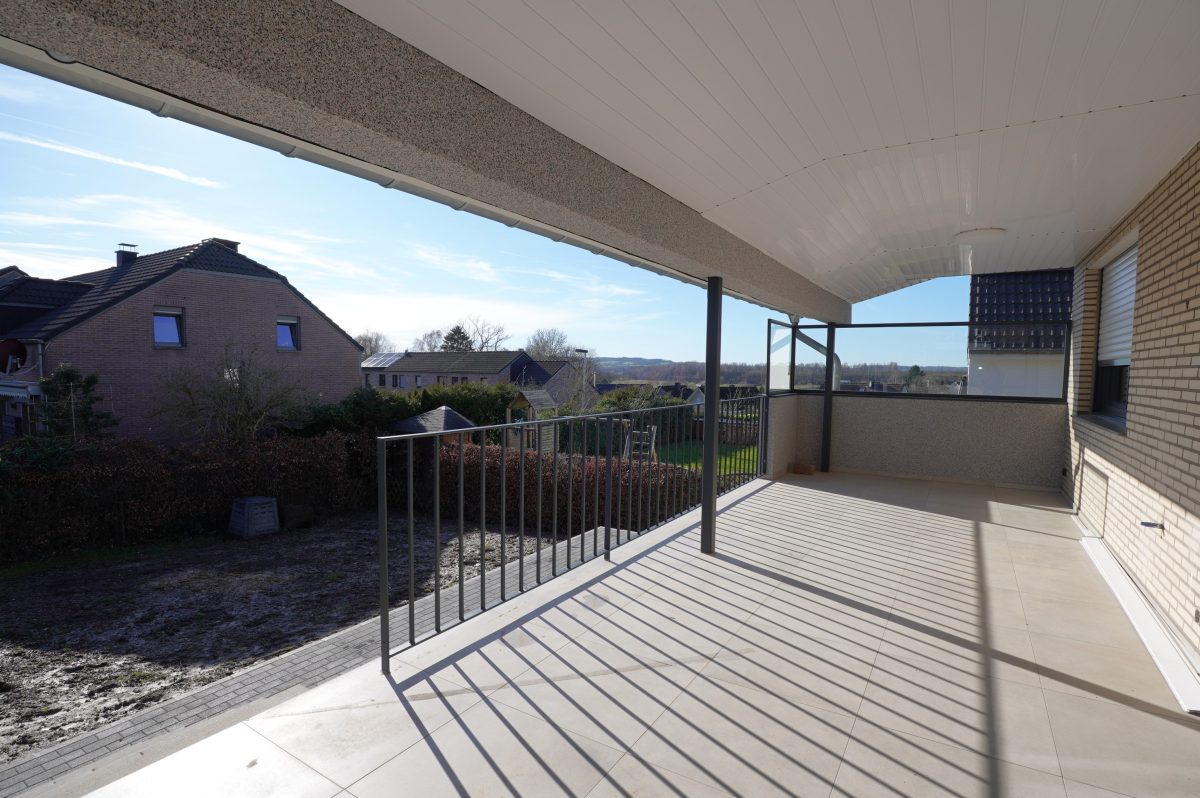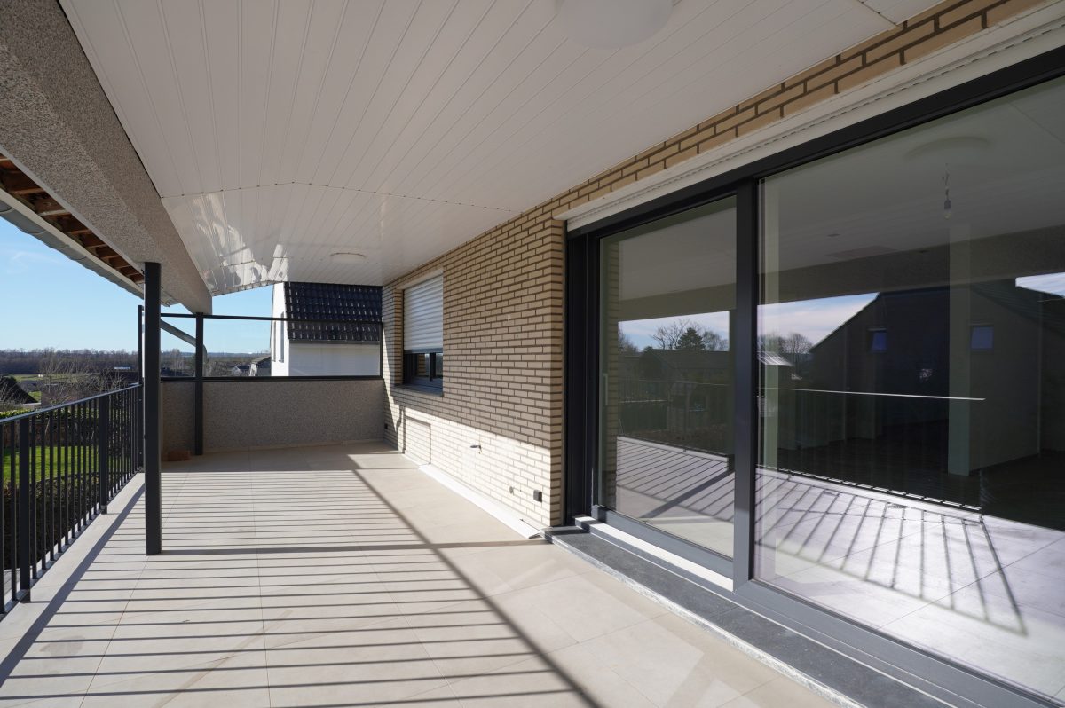 Die großzügige, überdachte Terrasse ist über eine doppelte Schiebetür erreichbar und führt zur zweiten Terrasse sowie in den schönen, nach Süden ausgerichteten Garten mit optimaler Sonneneinstrahlung.