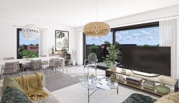 Jede Wohnung verfügt über ein bis drei Schlafzimmer mit einer Bruttowohnfläche von 72 bis 115 m² sowie großzügige Terrassen mit Garten oder Balkon – ideal für ein komfortables Wohngefühl.