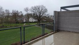 Über eine bodentiefe Schiebetür im Wohnbereich gelangen Sie auf die sonnige Terrasse mit wunderschönem Fernblick ins Grüne. Ein idealer Ort, um entspannte Stunden zu verbringen und Natur sowie Sonne in vollen Zügen zu genießen.