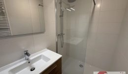 Badezimmer mit italienischer Dusche, Waschtisch mit Unterschrank und Spiegel