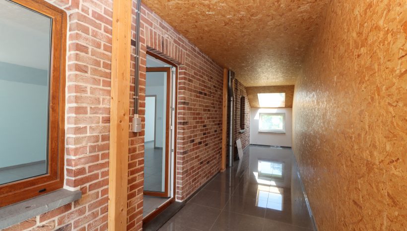 Die gesamte Wohnfläche von rund 590 m² verteilt sich auf drei Ebenen pro Seite. Jede der sechs Wohnungen zeichnet sich durch durchdachte Grundrisse (je 99 m², 95m² im Dachgeschoss), moderne Ausstattung und ein helles, offenes Wohnambiente aus. Sie setzen sich zusammen aus einer Eingangsdiele, zwei bis drei Schlafzimmern, einem großen Wohnbereich samt offener Küche, einem Tageslichtbad mit Dusche und Badewanne sowie einem Hauswirtschaftsraum mit WC.